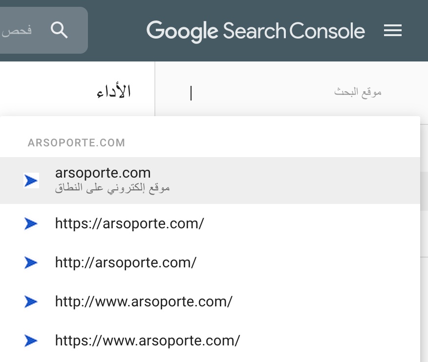 أيضا بعد أن تنتهي من إعادة التّوجيه. حاول إضافة موقعك الإلكتروني بجميع الصيغ إلى Search Console، كما يظهر على الصورة المرفقة التالية: