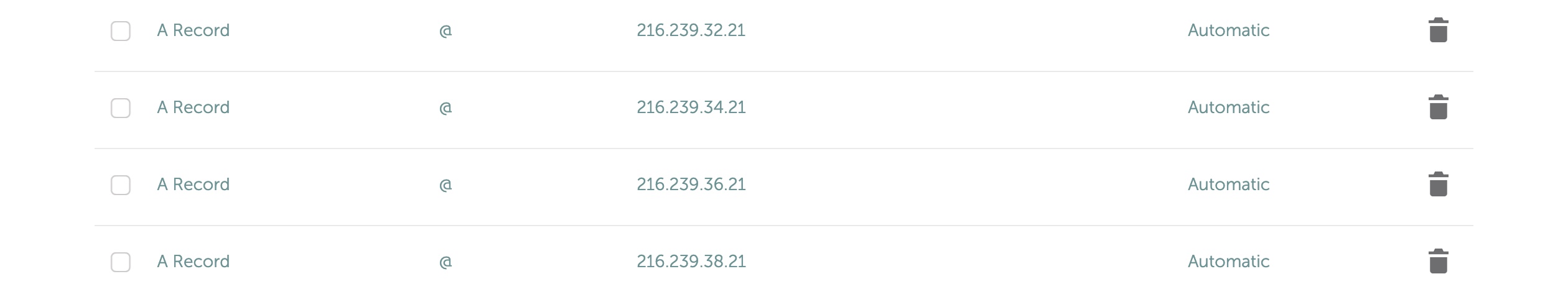 هل قمت بالوصول إلى إعدادات DNS لاسم نطاق موقعك الإلكتروني، وقمتَ بإضافة 4 حقول (A Record)، تحمل عناوين IP التّالية: